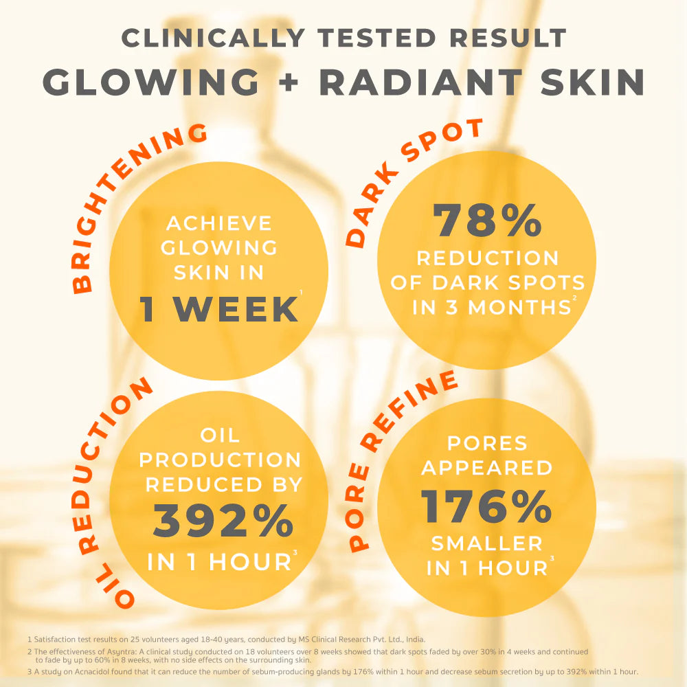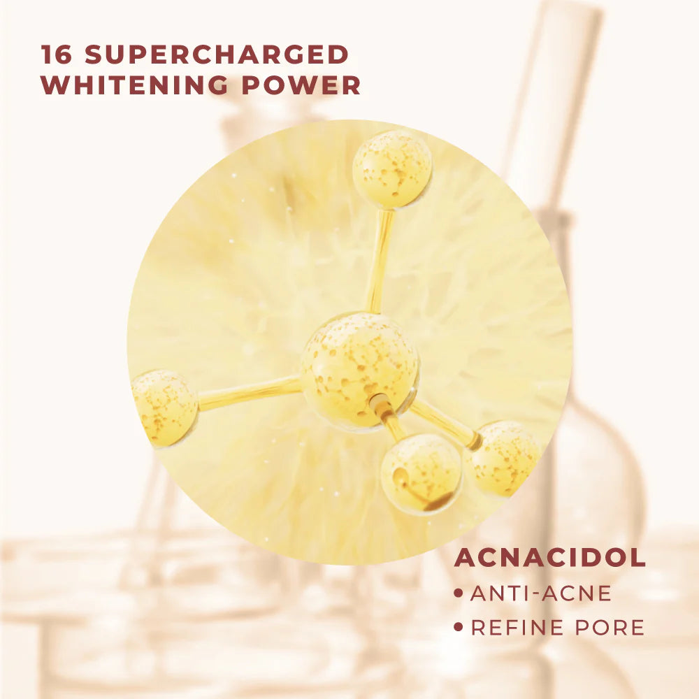 Efficacy: 16 natural brightening agents target and eliminate dark spots and dullness, working 4 times more effectively than hydroquinone. It inhibits all 8 melanin-producing mechanisms, revealing radiant, glowing skin in 4 dimensions without thinning it or causing future pigmentation.